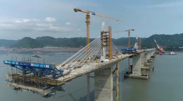 8月18日,由浙江交工集團(tuán)股份有限公司承建,福建開輝參建的寧德至上饒高速東吾洋特大橋合龍,央視新聞聯(lián)播當(dāng)天報道了大橋合龍的新聞,受到社會各界的高度關(guān)注。該橋全長2546.6米,橫跨寧德東吾洋海域,是福建寧德至江西上饒高速公路的關(guān)鍵控制性工程。福建開輝先后投入16臺塔式起重機(jī)助力該項(xiàng)目建設(shè)。因項(xiàng)目設(shè)備運(yùn)輸、安裝及后續(xù)拆卸作業(yè)均在海上作業(yè),14 —16#橋墩為主橋墩,塔機(jī)附墻采用超長拉桿。福建開輝技術(shù)團(tuán)隊(duì)通過優(yōu)化設(shè)備選型,減少了附墻數(shù)量,有效提升了G1514寧德至上饒高速公路福建省霞浦至福安段A1合同段的施工效率。寧上高速...