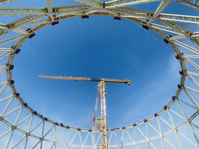 陜建機股份STC750-40A塔機助力 張掖電廠鋼結(jié)構(gòu)間冷塔建設(shè)